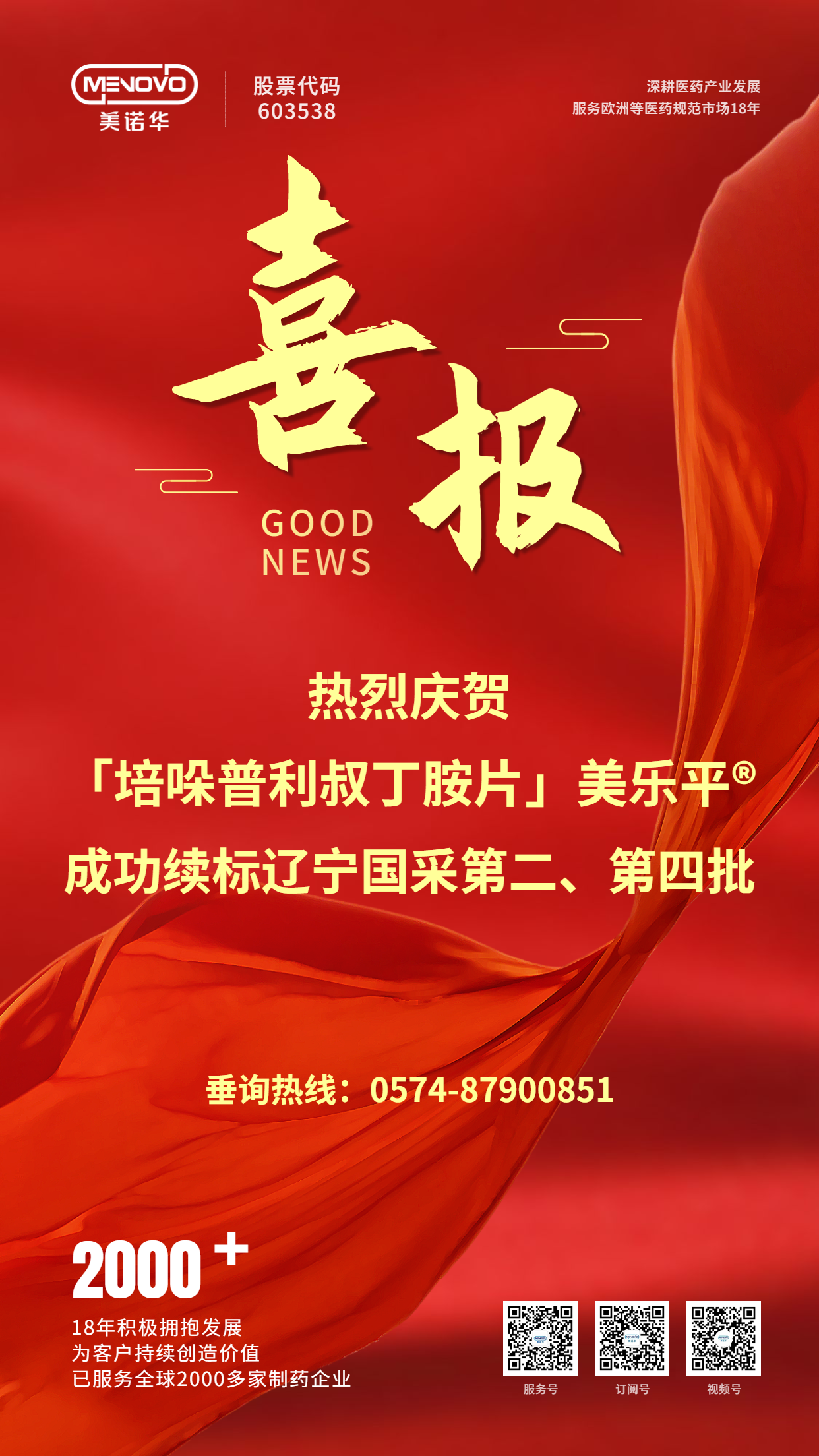喜报丨美诺华培哚普利叔丁胺片成功续标辽宁国采第二、第四批